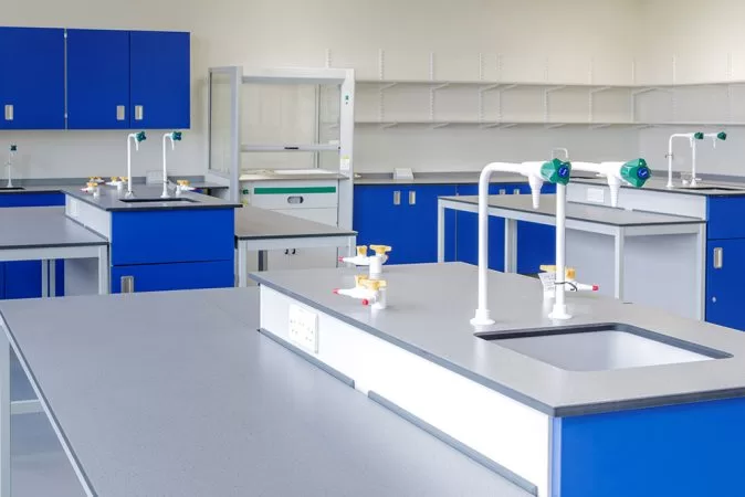 Our experienced design team recommends the hard-wearing Trespa® range of worktops for school science labs. As a result, Backwell School’s labs and prep room all benefit from high-impact and wear-resistant Trespa® TopLab®BASE. This is ideal for worktops in educational applications where severe use and frequent cleaning is expected.